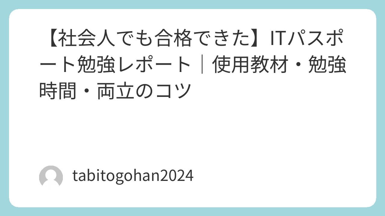 社会人になって、早20うん年。自分が新入社員だった頃と社会環境がガラッと変わりました。今やチャットGPTやAIといったIT技術が世の中に溢れています。ITの知識が身につかないまま取り残されてしまうのでは…?と思い、ITの基礎知識を身に付けるべくITパスポート試験に挑戦しました。使用した教材は技術評論社の『ITパスポート合格教本』と付録の学習アプリのみ。忙しい仕事の合間にコツコツ勉強し合格できたので、今回はその勉強方法、使った教材、勉強時間、両立のコツを詳しく紹介します。
