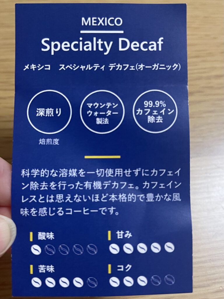 - 購入した豆: カフェイン99.9%除去のメキシコの豆